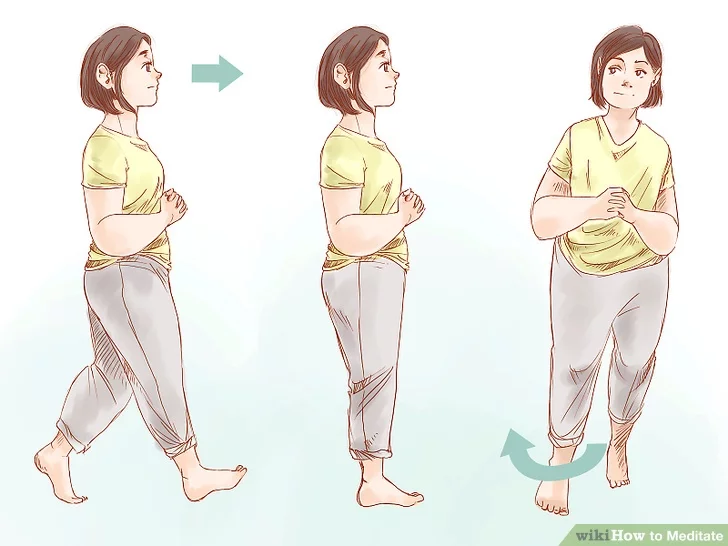 Step slowly with your right foot, pausing briefly before stepping with the other foot. Only one leg should be moved at any time.