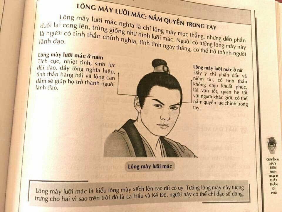 Những người có nhân tướng học khuôn mặt quyền lực thường có lông mày mọc thẳng, đến cuối thì cong lên như hình lưỡi mác.